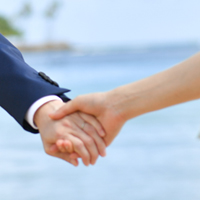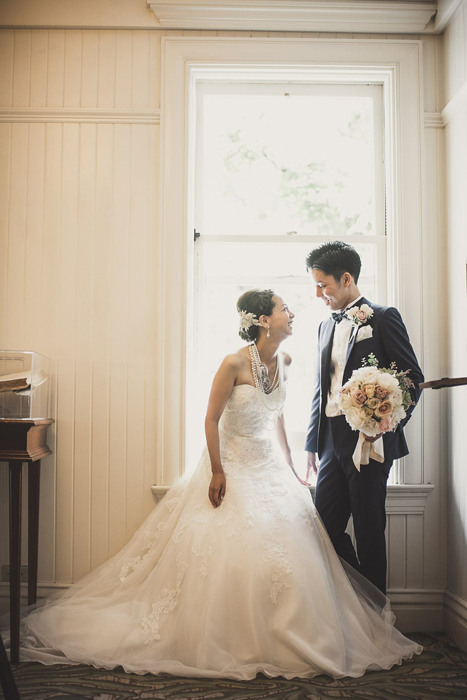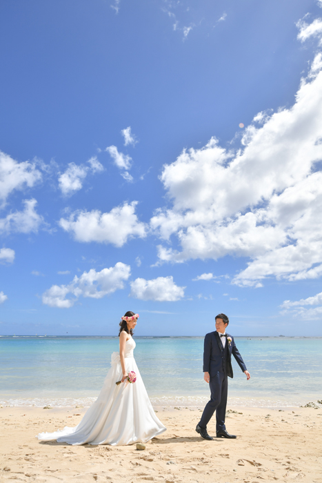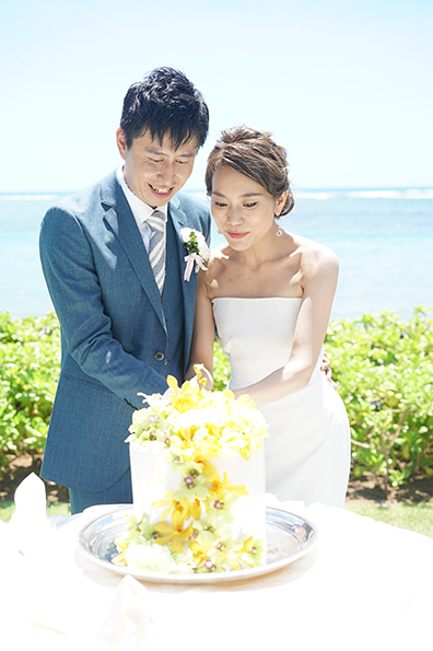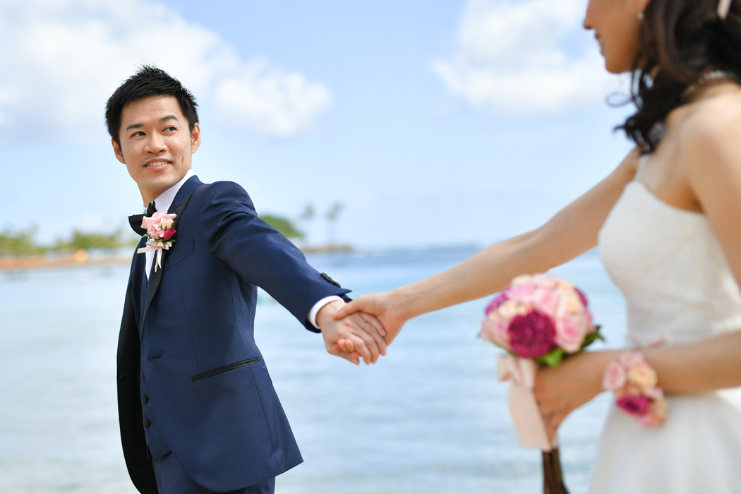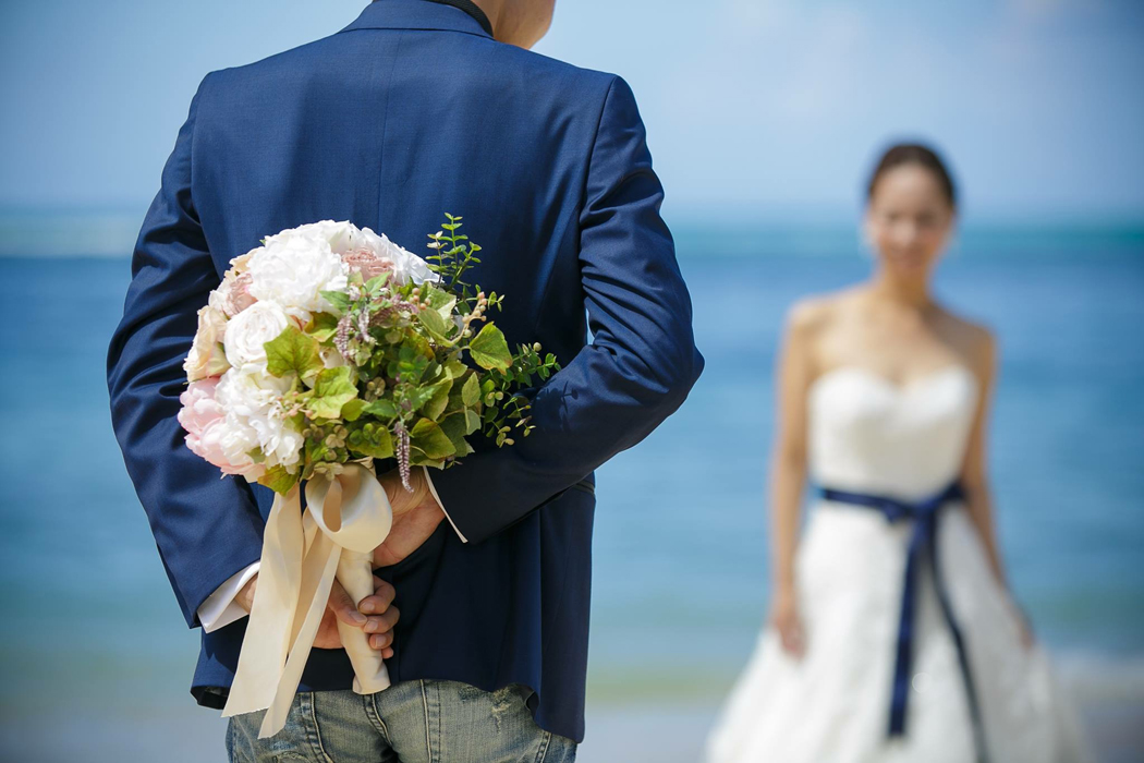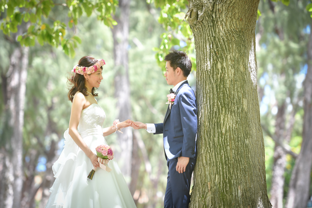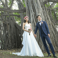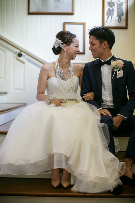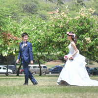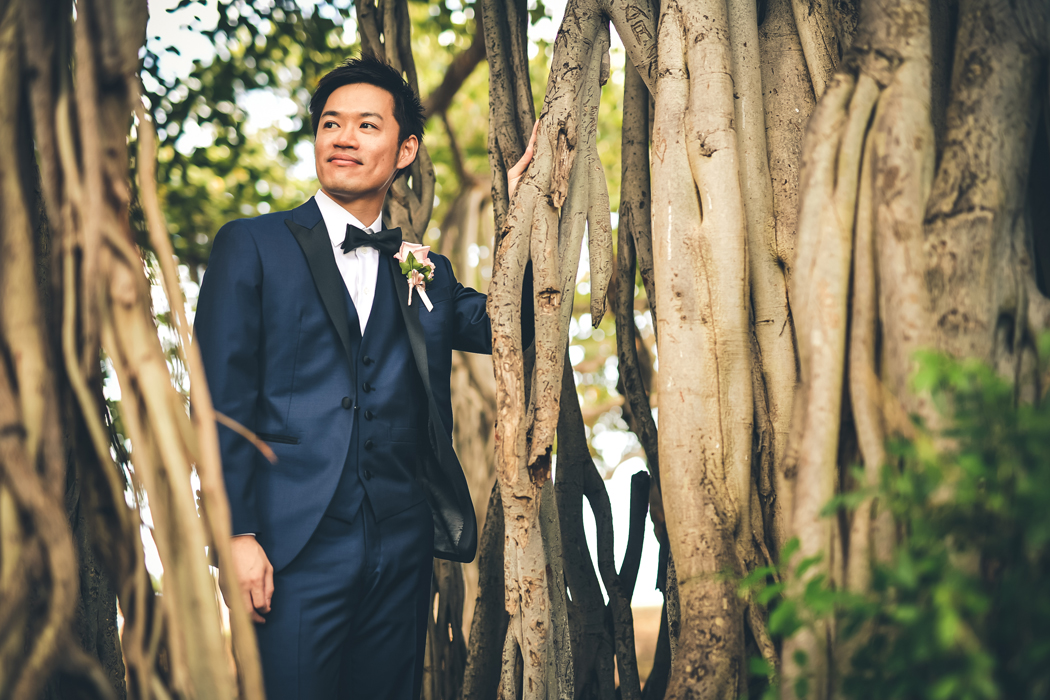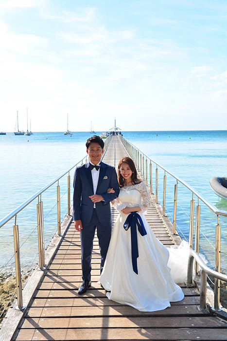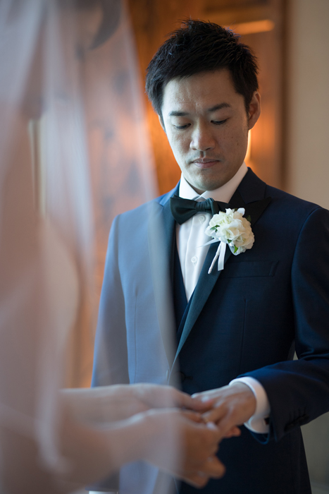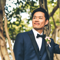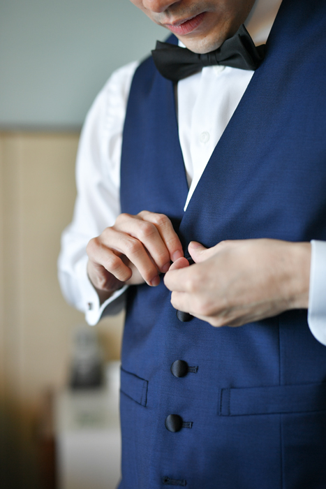 「もともとHarry Style さんでスーツを作っていただいていて、挙式でも絶対オーダーでと決めていたので、おすすめのネイビーのタキシードを作っていただきました。彼女も打ち合わせに立ち会ってくれて盛り上がりました。やはりHarryさんの服はシルエットがよその物と全然違って、周りに褒められます。先日は早速紺のジャケットを友人の海外挙式に着て行きました。」(30代前半男性)