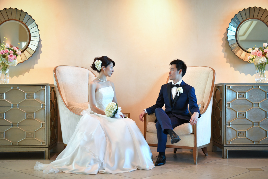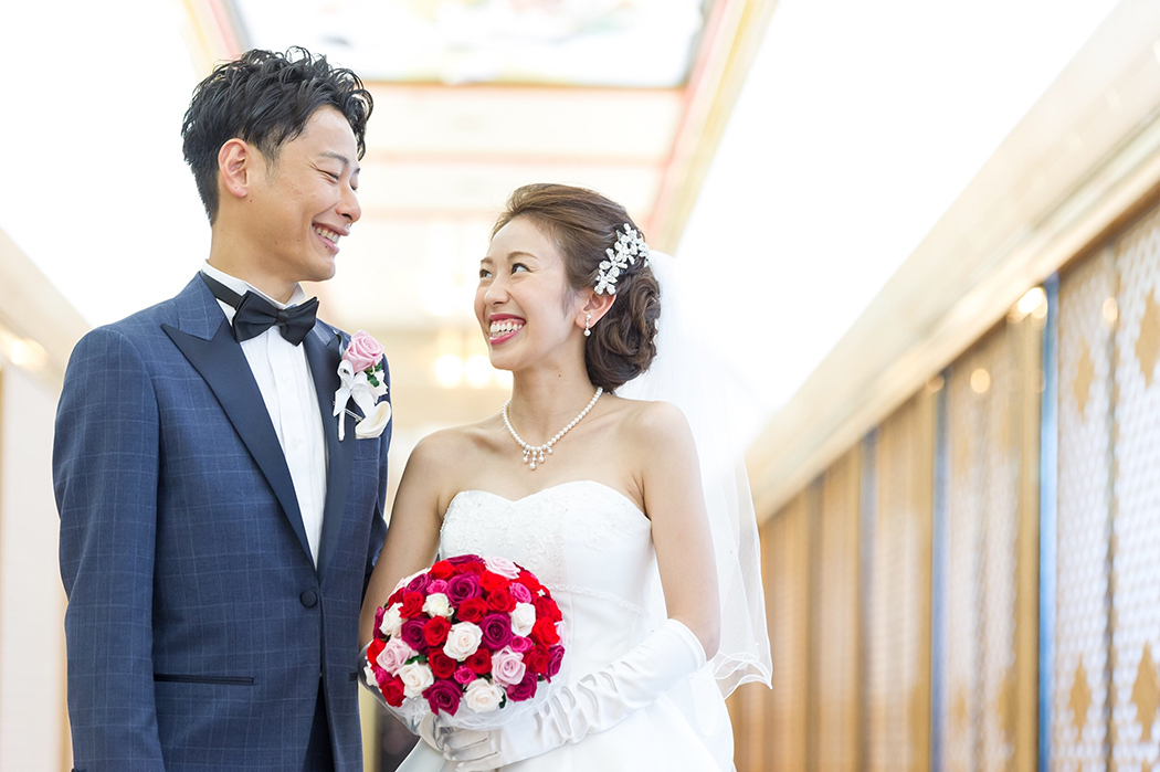 挙式後も、インナーやパンツとの組み合わせ次第で、友人の結婚式の二次会や、ちょっとドレスアップしたいイベントなど、幅広い着こなしができるのもネイビーならでは。大切な思い出の衣装をずっとお使いいただけます。