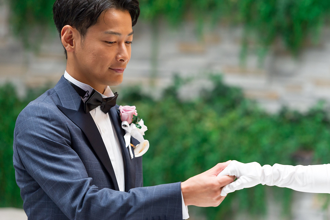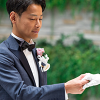 タキシード=黒という先入観をお持ちの方は多いですが、ブラックタキシードは本来は夕刻以降のセレモニースタイルに限られます。特に日中に行われるの挙式の場合はNGとされています。