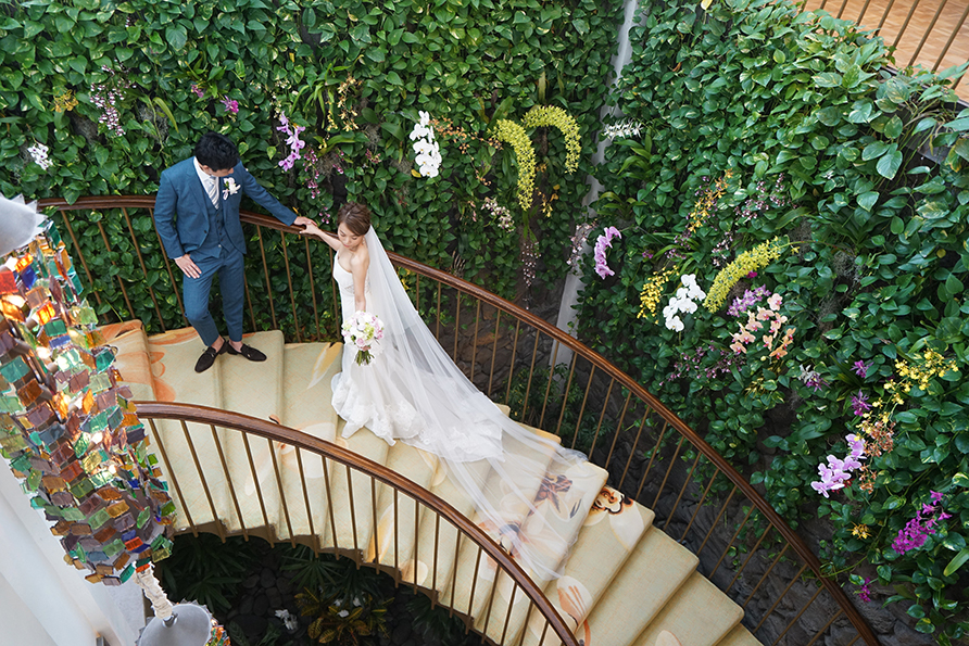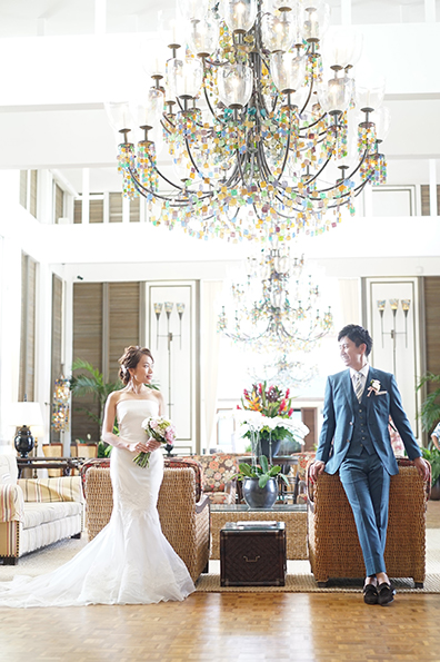 自然光やビーチ、木々の緑に映え、花嫁のドレスの白を引き立てるネイビーは、爽やかで誰にでも好印象を与えます。リゾートウェディング、海外ウェディング、レストランウェディングなど、今どきの格式ばらない挙式スタイルにどうぞ。