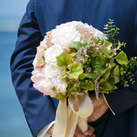 新婦のドレスがオフホワイトの方、柔らかい雰囲気がイメージの方、濃い色が似合わない方にお勧め。